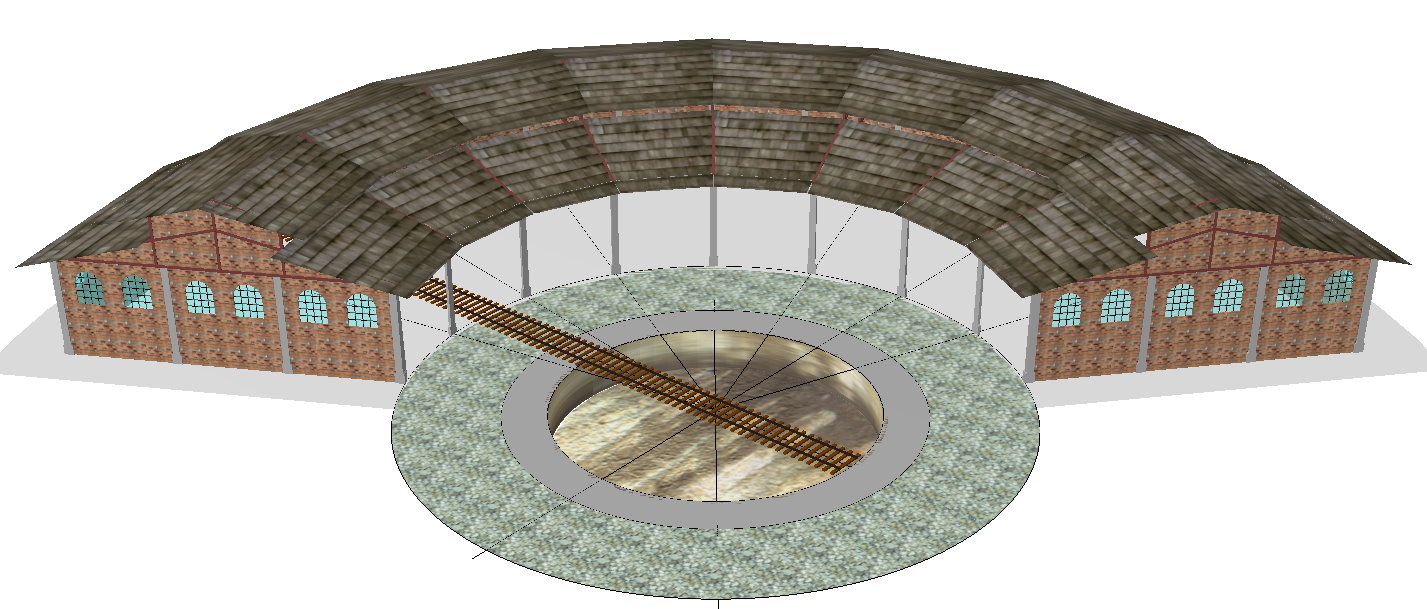 As medidas do depósito de locomotivas que utilizo nesse projeto, me foram passadas pelo nosso Amigo Jonas Braga Gaudêncio e eu as utilizei para desenhar em 3D as paredes do depósito de locomotivas da Frateschi.